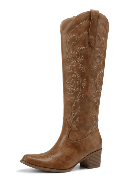 Sayra Western Boots — Statement Style with All-Day Comfort “I highly, highly recommend these boots, these are my first pair of cowboy boots ever.” one reviewer shared. Designed with a 5mm memory foam insole, vintage floral embroidery, and a modern slim square toe, these knee-high western boots blend comfort with standout style. The inner side zipper makes them easy to slip on, while the cushioned feel keeps them wearable from brunch to concerts. A great gift for moms who love a little personality in their wardrobe.