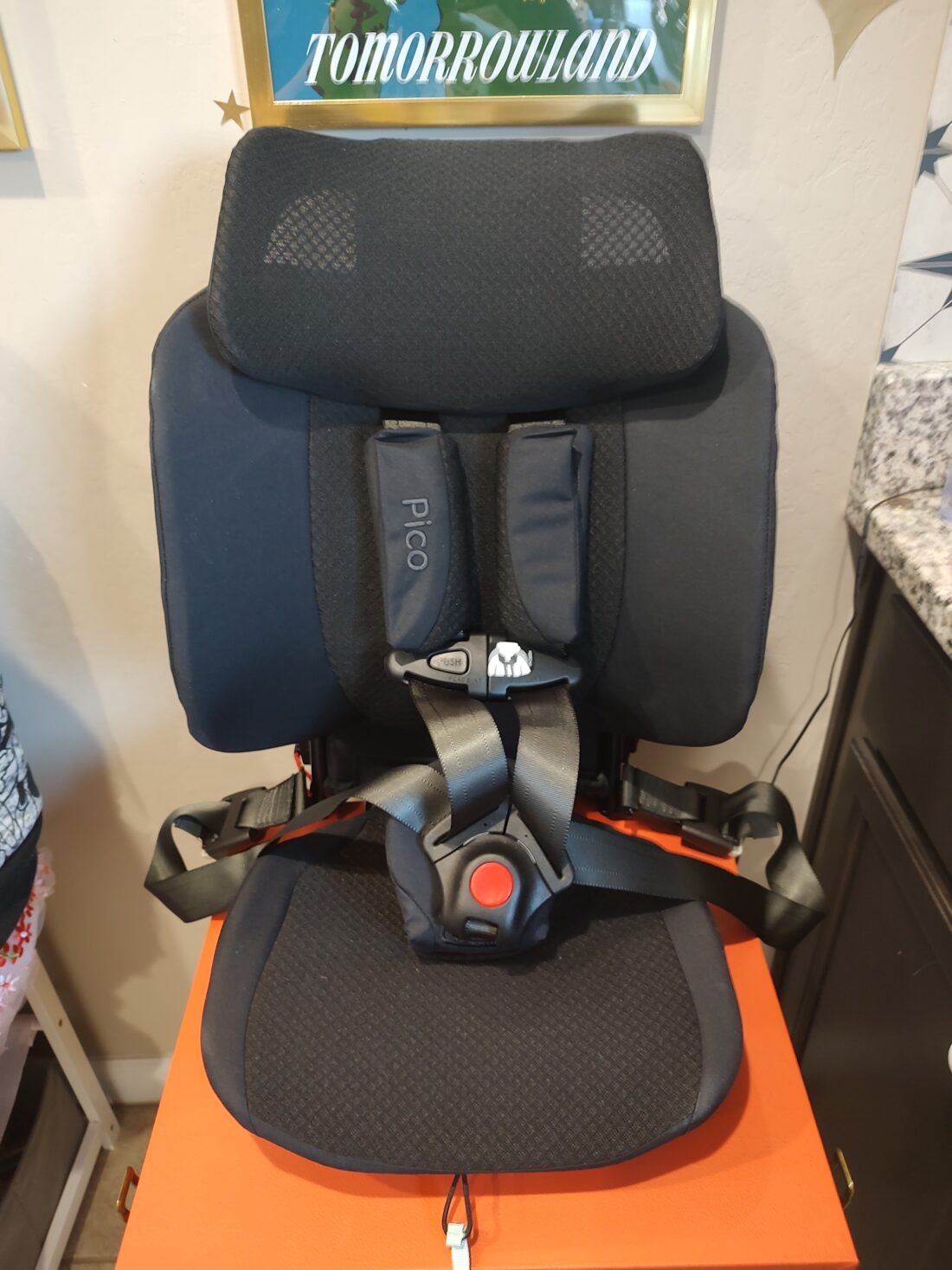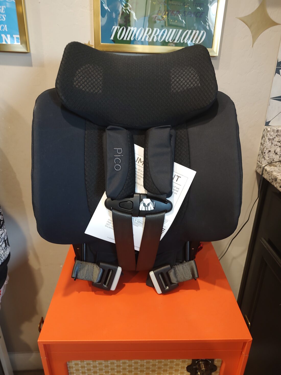 I had the chance to take a look at the Pico foldable car seat and it is very high quality and so well made. It feels very sturdy and has the appropriate clips for mounting this directly to the car’s car seat bars. The lightweight design makes it so much easier than huffing it through the airport with a giant car seat in tow. I am a big fan of the fact that you can put it in the overhead bins on the airplane, no more ruined car seats because of checking them. It is easy to fold and unfold.