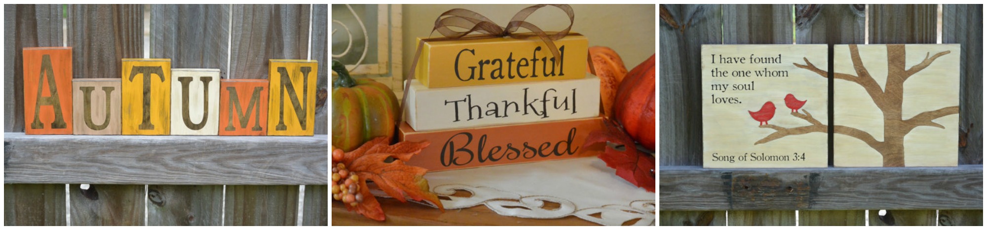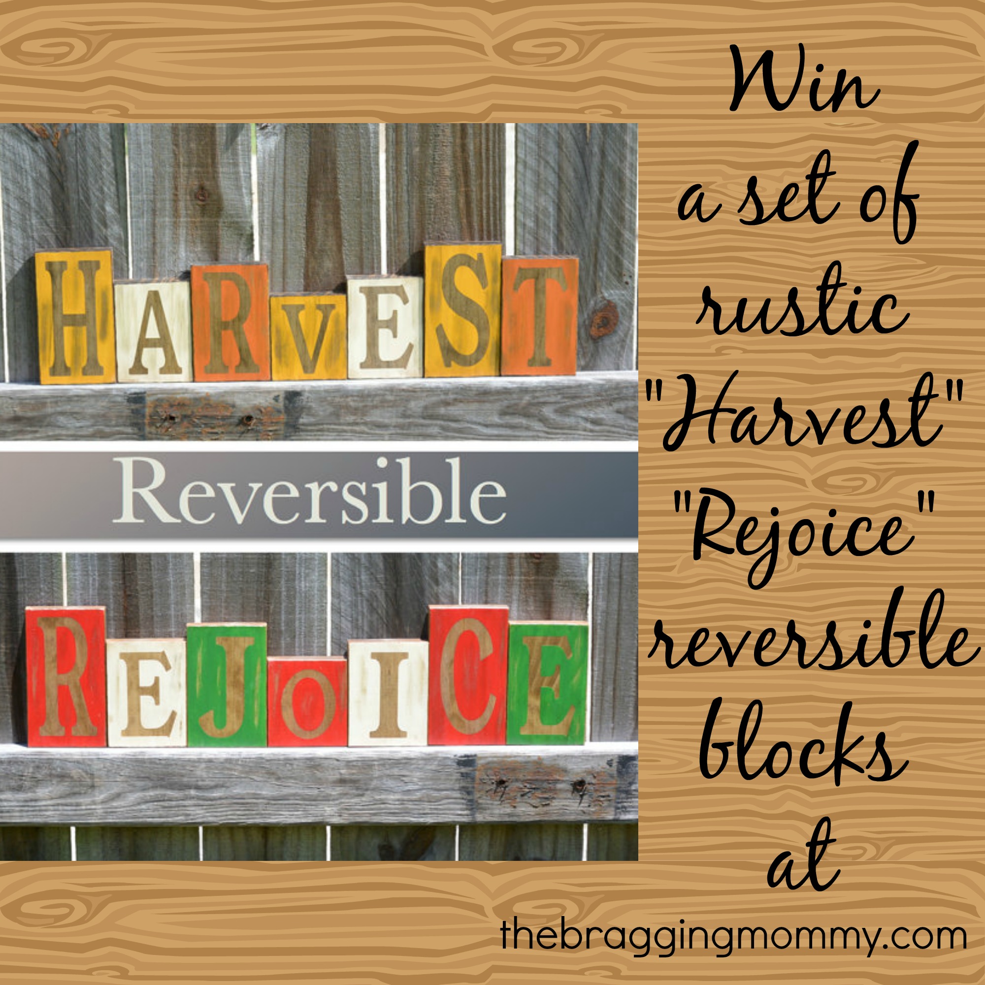 Adamson Woodcraft is generously giving away one set of our rustic “Harvest”/”Rejoice” reversible blocks to one lucky reader!