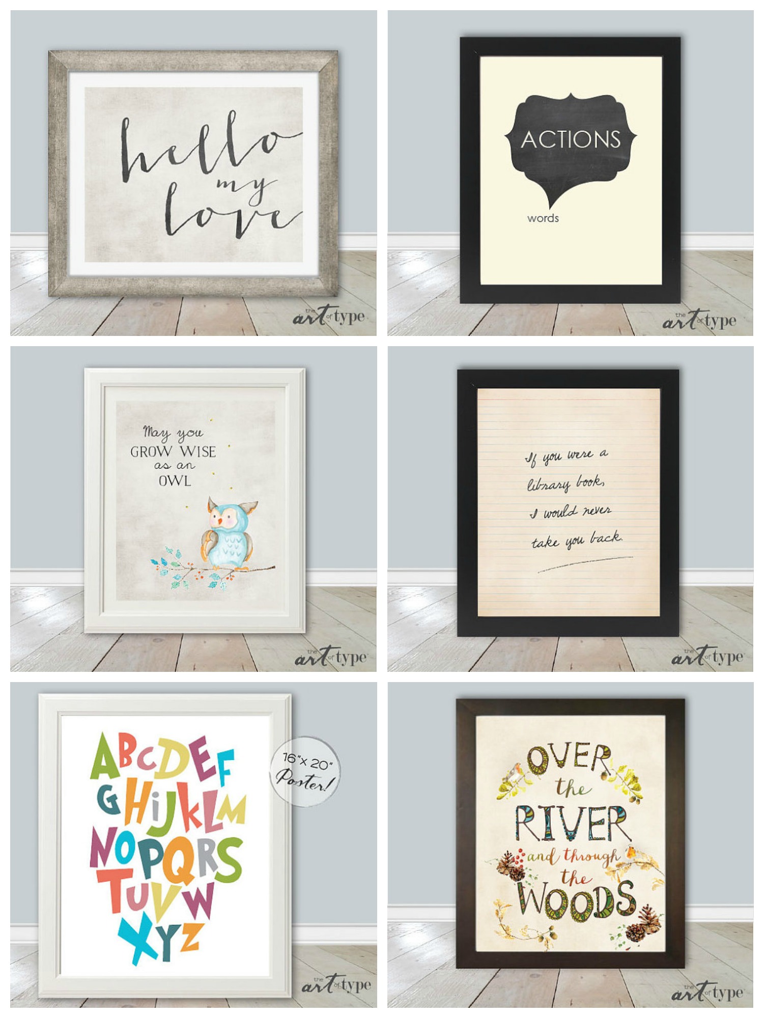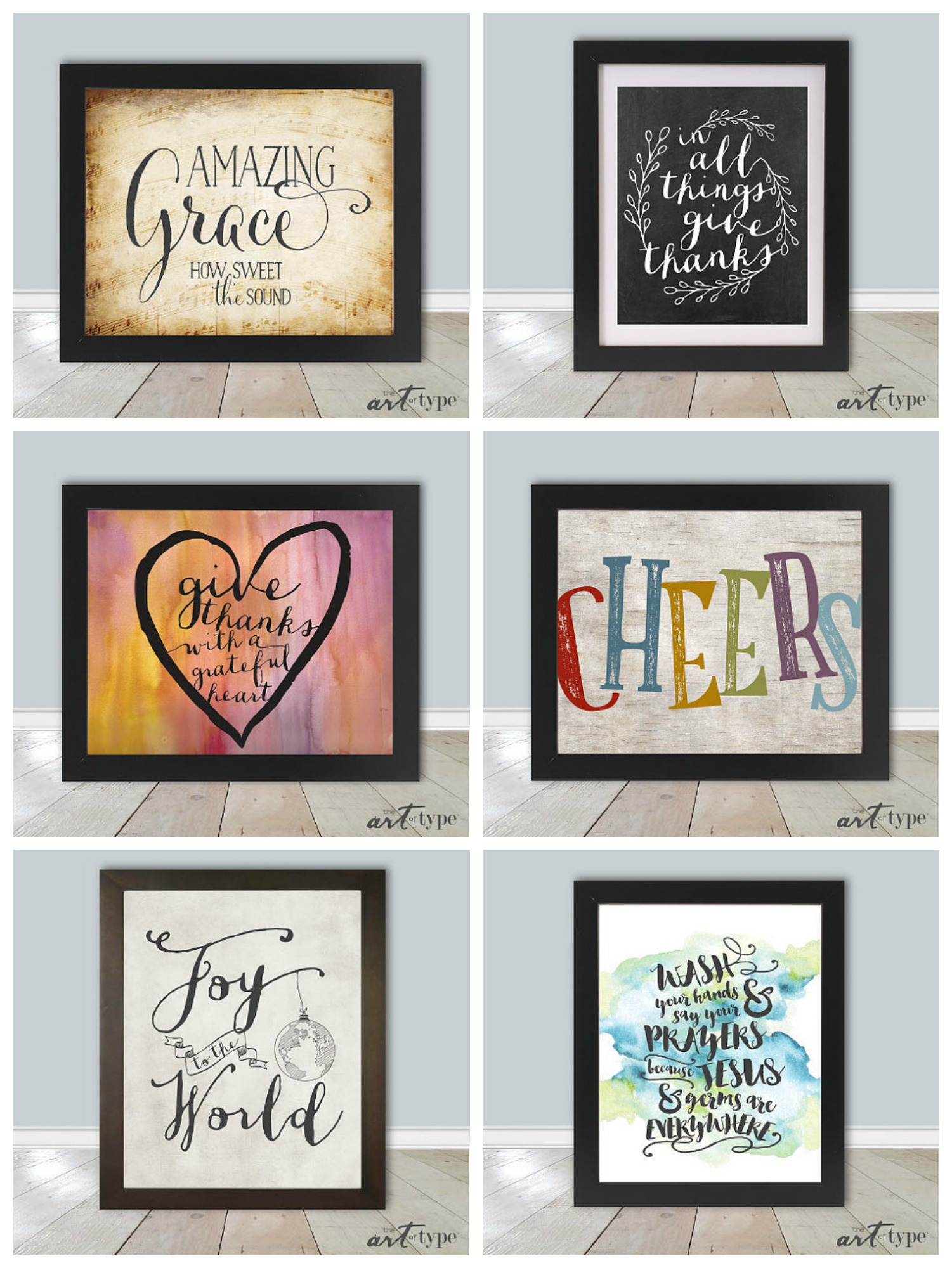 There is pretty much nothing else I love more than a good printable. I am *sort of* creative, in certain situations. But computer art is not one of them. So I LOVE searching for beautiful prints that have meaningful words that are woven together to create a gorgeous work of art. The Art of Type is definitely one of my favorites! There are SO many fabulous options to choose from, good luck picking just a couple! Funtypography prints, education quotes, children’s prints, and much more. They are GORGEOUS! I have a frame in my house that just is an always rotating printablesdisplay. I love how it allows me to add some decor for any holiday throughout the year, and fun quotes and sayings that I enjoy and that I want our family to tuck into our hearts. Be sure to check her Etsy shop out, these would make a great, easy, affordable gift this holiday season! {See below for a great discount!}