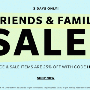 I am a part of the Shopbop Advertising Program and receive compensation from Shopbop monthly for the ad on my site. All opinions are my own. Right now you can save big during the Shopbop Friends and Family Sale! Get 25% OFF with the Code: INTHEFAM Visit Shopbop.com to start … [Read more...]