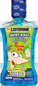 This “Phineas & Ferb”-themed mouthwash includes an added kick for kids by tinting food particles and bacteria, leaving reachproof in the sink of a cleaner mouth.