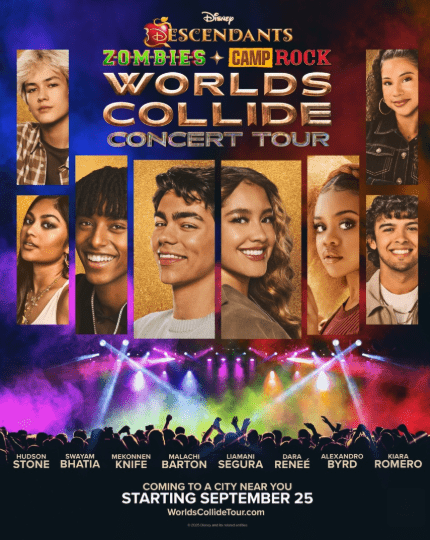 Los Angeles, CA – (March 18, 2026) – Today, Disney Concerts, Disney+ and AEG Presents jointly revealed tour dates and on-sale information for the next “Worlds Collide Concert Tour” of North America coming in Fall 2026, featuring stars from the “Descendants,” “ZOMBIES” and “Camp Rock” film franchises including Malachi Barton, Liamani Segura, Dara Reneé, Mekonnen Knife, Hudson Stone, Swayam Bhatia, Kiara Romero and Alexandro Byrd.