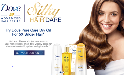 *If you are not completely satisfied with the Dove Advanced Hair Series Pure Care Dry Oil system, Dove will refund your purchase (from 9/21 – 12/31). Visit hairmoneyback.com for details.