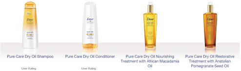 “Dove Pure Care Dry Oil collection is ideal for all hair types and delivers five times silkier hair [after just one wash]”-Dove