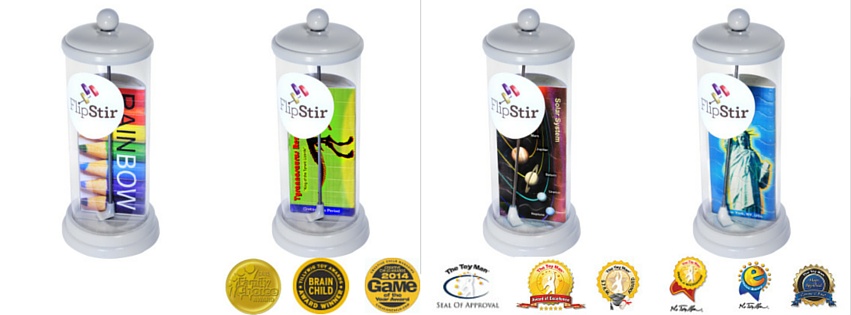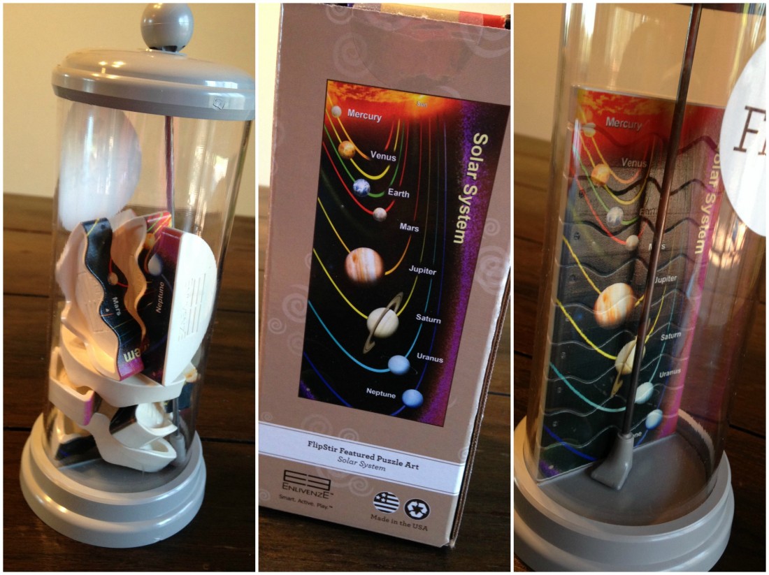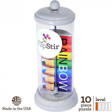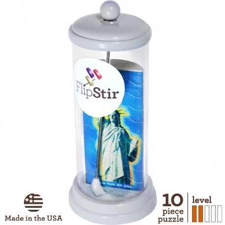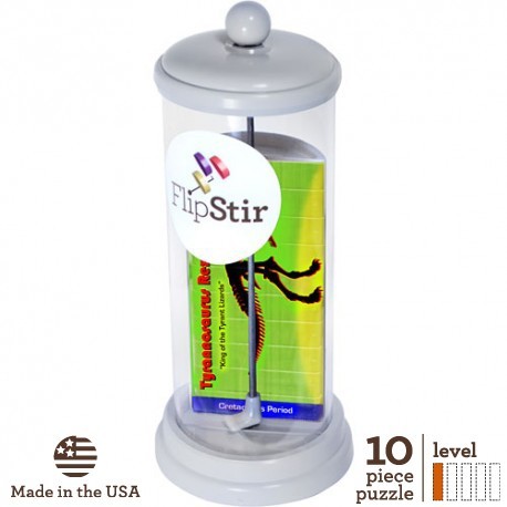 The award winning FlipStir is a new twist in 3D puzzle gaming; this patented design captivates young and young-at-heart! Simply pull the wand back, shake the puzzle to scramble the pieces; then just use the wand, gravity and your own ingenuity to solve the puzzle and reveal the artwork.