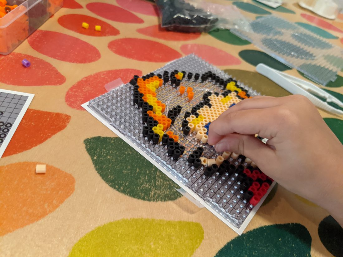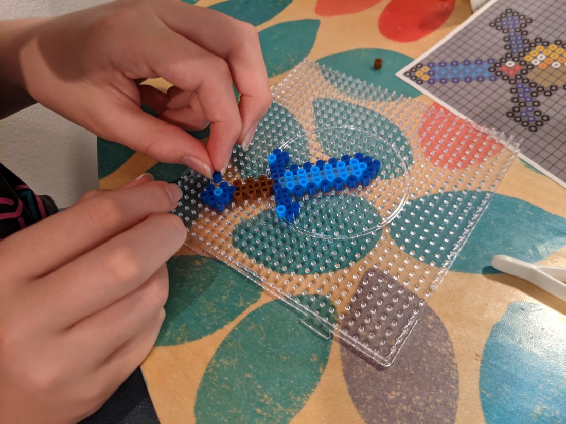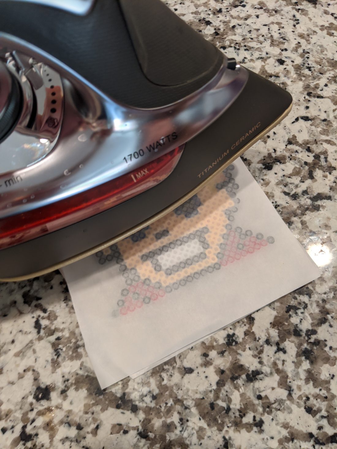 Once you have built your design bead by bead, you place the iron paper over it and iron it to melt them all together.