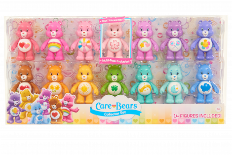 “Take the magic of Care-A-Lot Home with you with this amazing Care Bears Collector’s Set. This collector’s set features many of your favorite Care Bears and introduces the Limited Edition Rainbow Heart Bear! A true collector’s dream! Bring home all 14 adventurous and playful Care Bears for your very own big bear adventure!