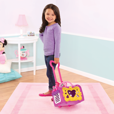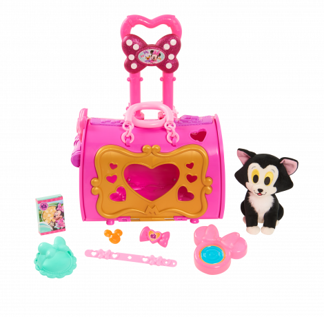 With Minnie’s Happy Helpers Pet Carrier, you can bring your furry friends with you wherever you go! This adorable pink carrier comes with Minnie Mouse’s plush kitty Figaro! The carrier has wheels and an extendable handle for you and Figaro to roll on to the next Happy Helpers mission in style! The set includes 6 purr-fect accessories for grooming and caring for your pet, including a 2-in-1 food and water bowl, pet brush, a play treat box, and a kitty collar with pop in charms that you can also wear as a bracelet! The carrier opens from the front and side for the ultimate play experience!