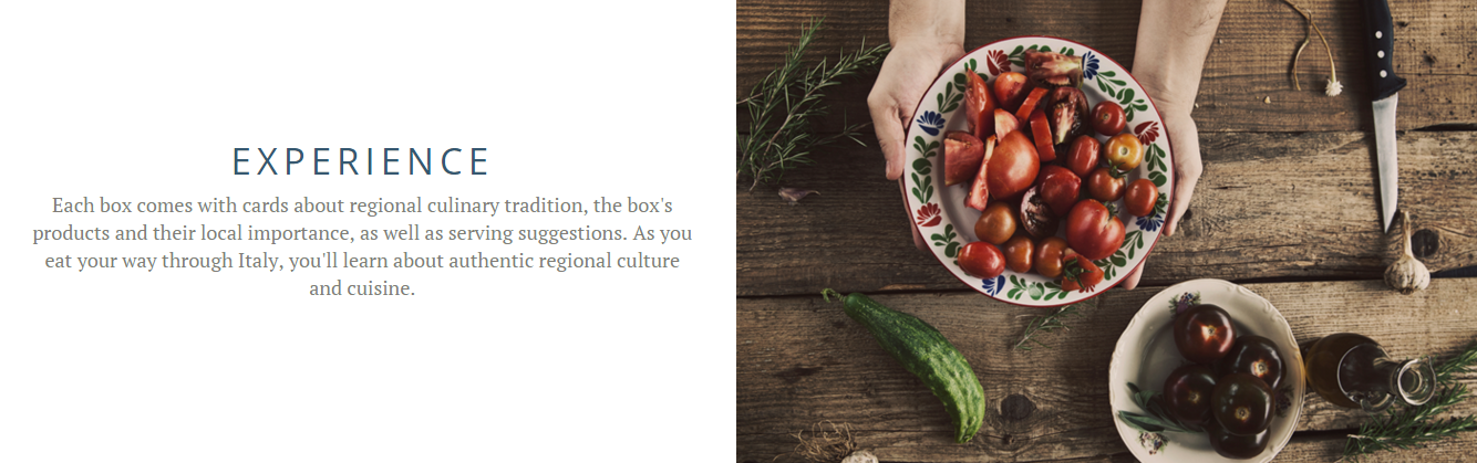 - Each month, Receive a box with 6 artisanal gourmet products from different regions of Italy