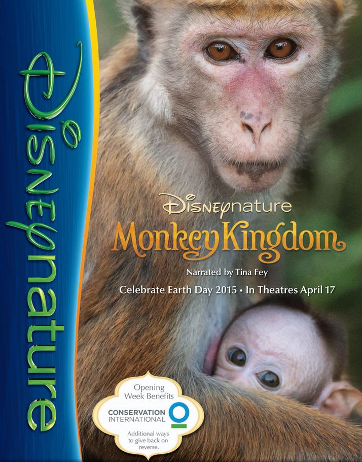 “See MONKEY KINGDOM opening week (April 17-23) and Disneynature will make a donation in your honor to Conservation International to help protect monkeys and other endangered species in their natural habitats. Learn more at http://nature.disney.com/