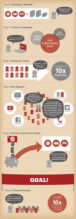 Receive 20%-40% of sales during the active campaign period – plus, your organization will earn 5% of future purchases for up to one year! * (Schwans Cares website)