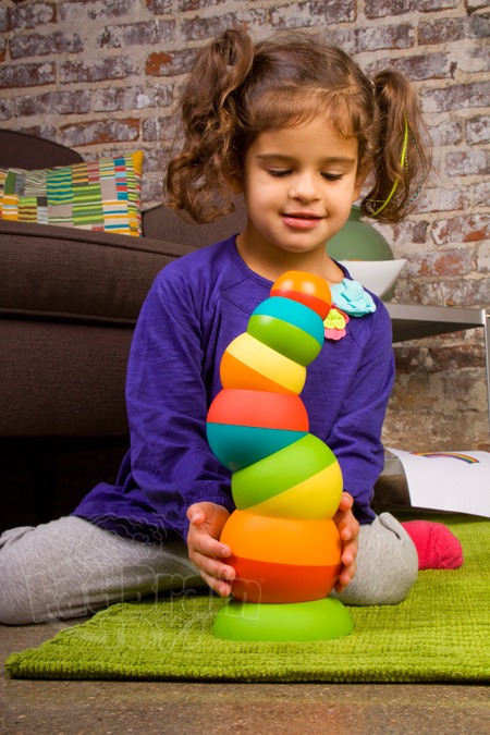 This is an excellent toy! Baby loves it very much. She mostly likes to chew on them since that is the phase she is in right now. Her big brother who is 5 enjoys stacking them for her and she topples them over trying to grab them. They have fun playing with it together. I love that it is a toy that can be played from baby to child.