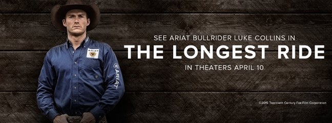 For the 20th Century Fox release of The Longest Ride, Ariat was able to bring western authenticity and knowledge about rodeo, bull riding, cowboys and overall western lifestyle to the film. They helped create a sponsorship of the lead character, Luke Collins, by working closely with the costume designers and helping provide apparel and footwear to create an authentic bull rider. For more information on their partnership, click here.