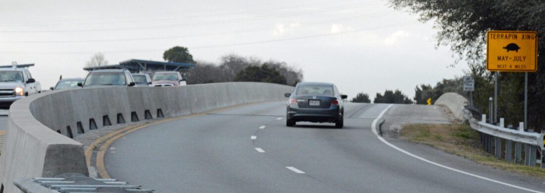 Concrete traffic barriers guide vehicles into the correct lanes, which helps people drive in an organized way. When cars are directed clearly, there are fewer sudden lane changes and stops.